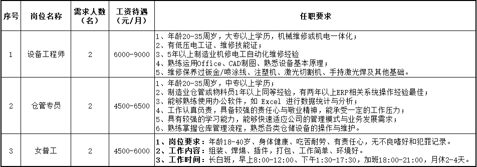 1、上班時(shí)間:按5天8小時(shí)制,按國(guó)家規(guī)定發(fā)放加班費(fèi);